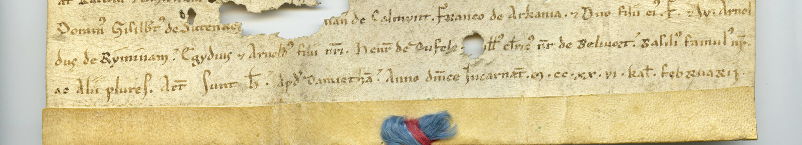 Oorkonde uit 1221 in het Latijn waarin Wouter Berthout, heer van Mechelen, aan zijn verwanten aankondigt dat hij, toen hij zich bevond bij de kruisvaarders in Dumyât, aan het Gasthuis van Onze-Lieve-Vrouw van het Huis der Duitsers te Jeruzalem bossen heeft geschonken in ‘Rama’ en ‘Grootloo’ en in het Waverwoud, alsook de rechten voor de ontginning ervan.